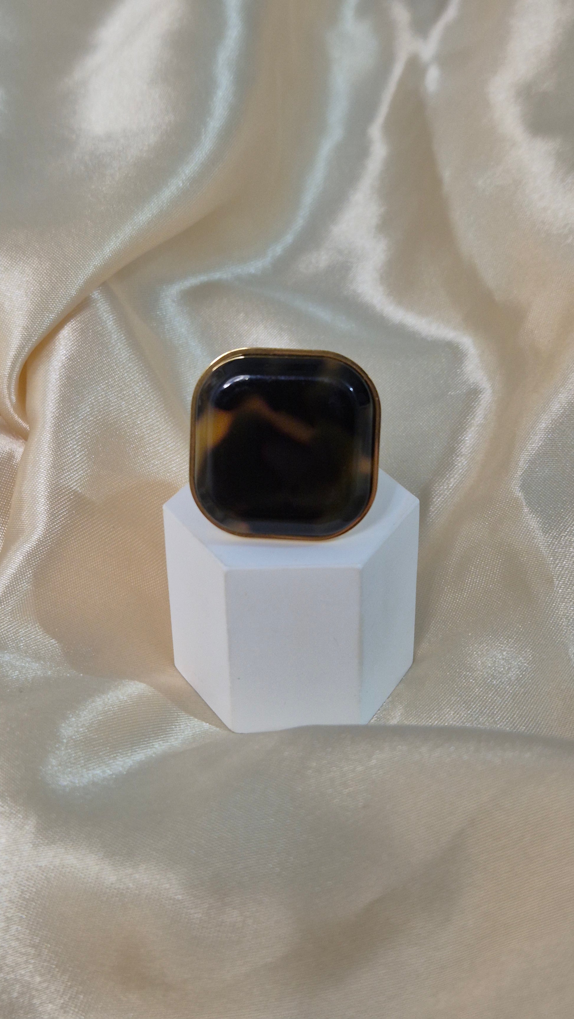 Bague en acier inoxydable ajustable en forme carré couleur écaille de tortue.