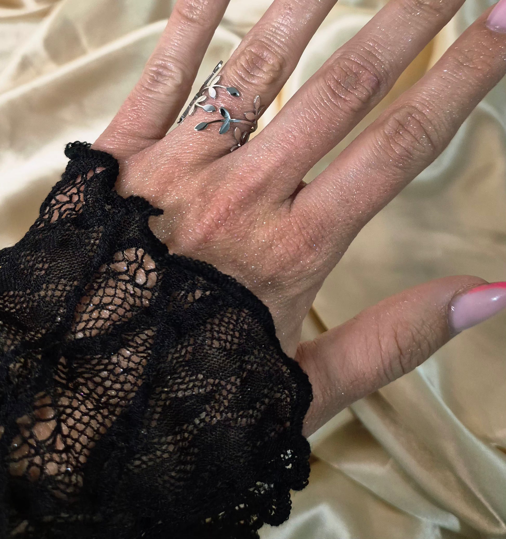 Bague en acier inoxydable ajustable par l’avant à motifs feuillage