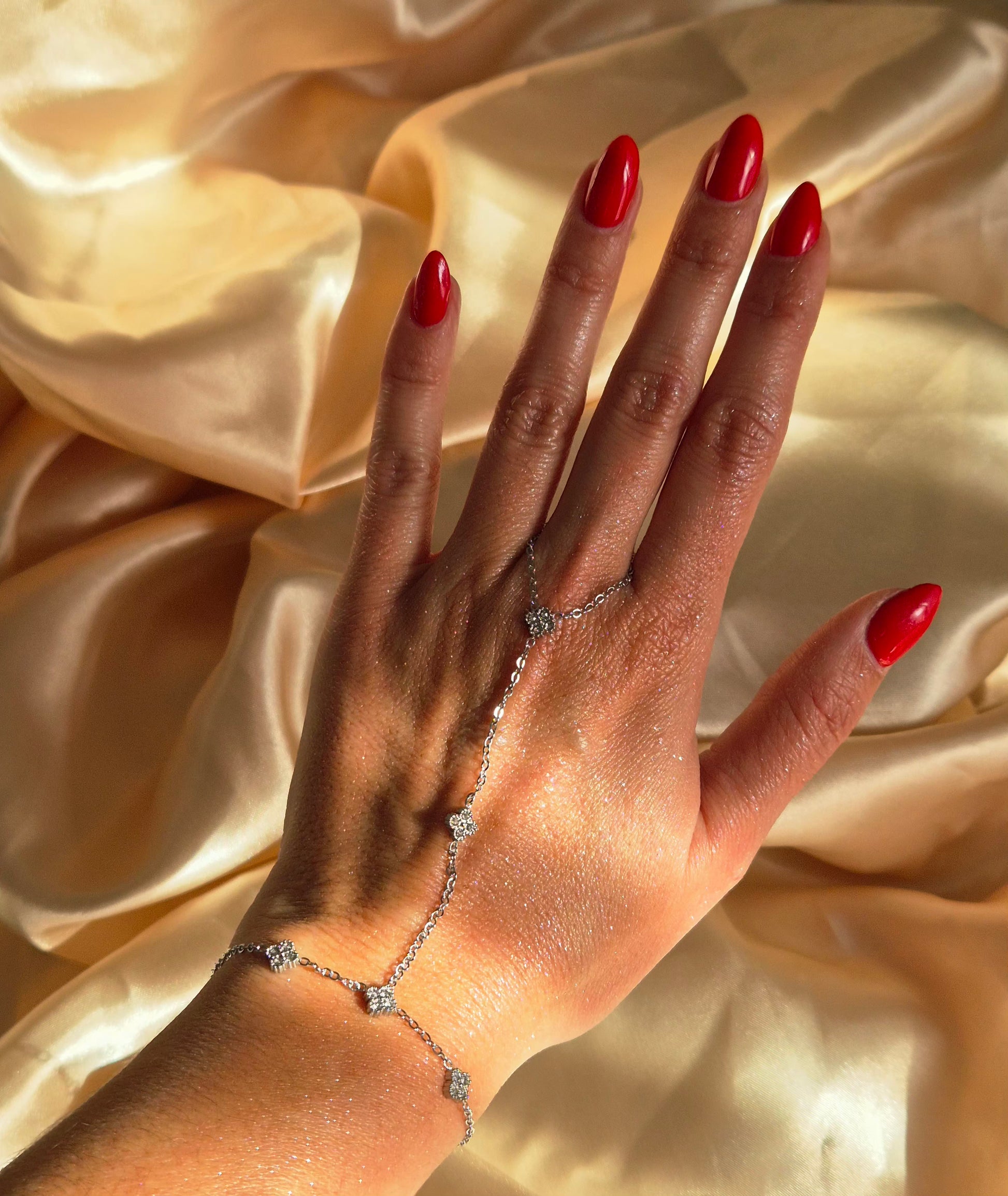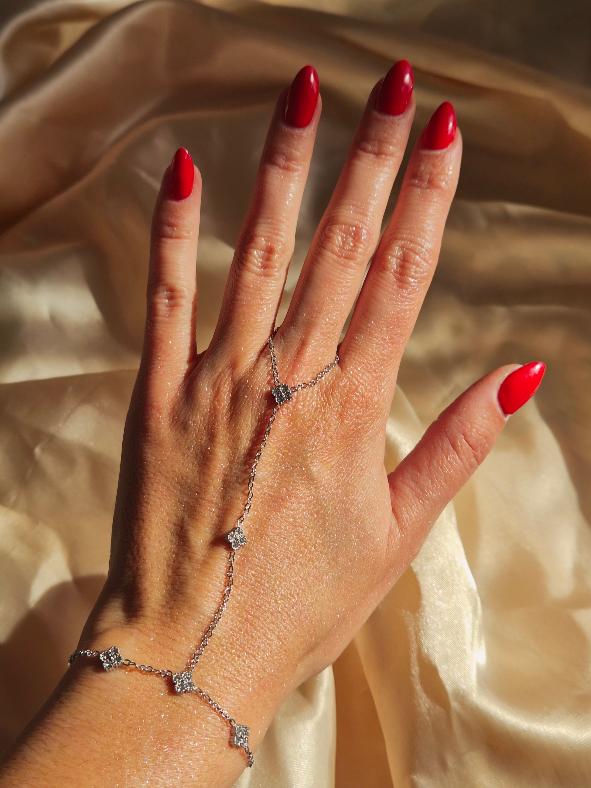 Chaîne de main en acier inoxydable avec petits trèfles ornés de strass.