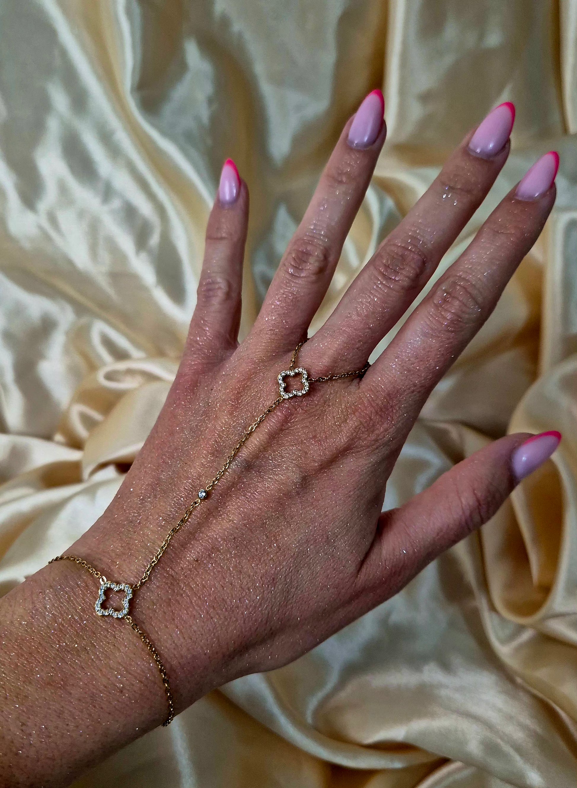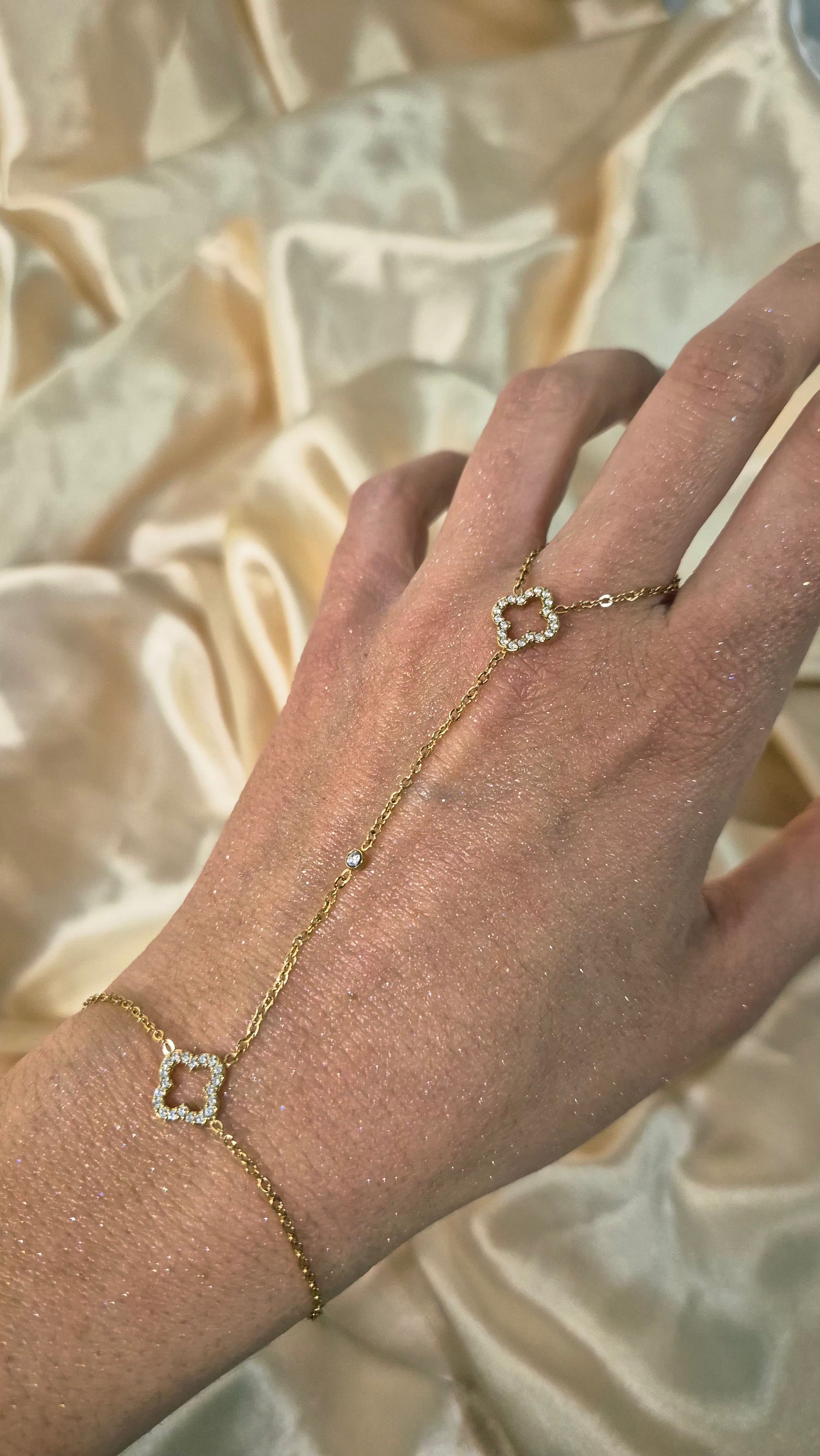 Chaîne de main en acier inoxydable avec motifs trèfles ornés de strass