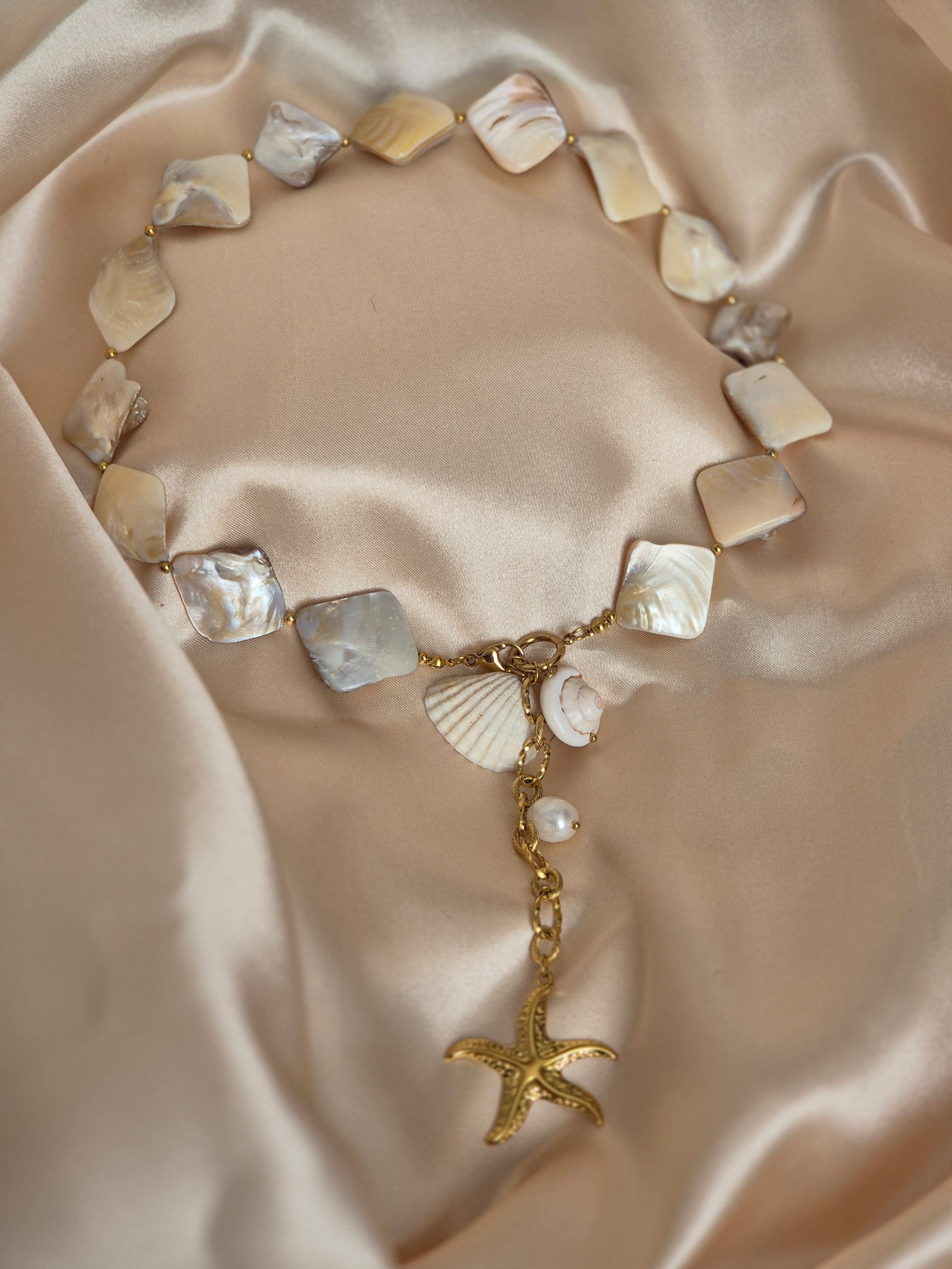 Tout en véritable coquillage, perles d’eau douce, et acier inoxydable