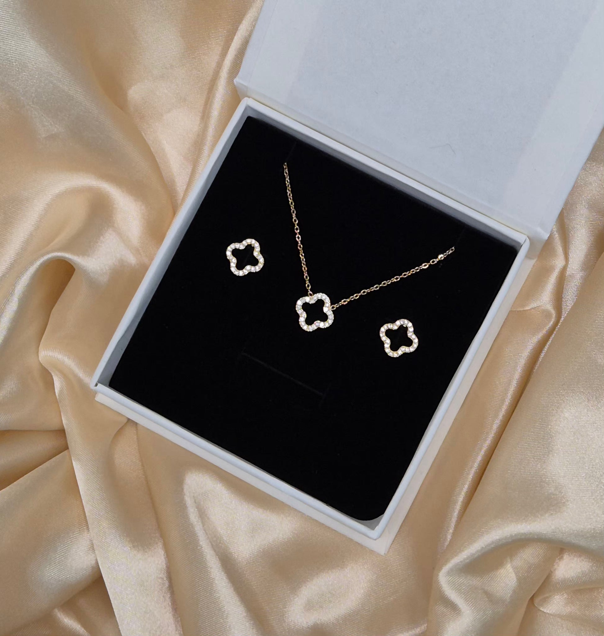 Parure en acier inoxydable à motifs trèfles ornés de strass